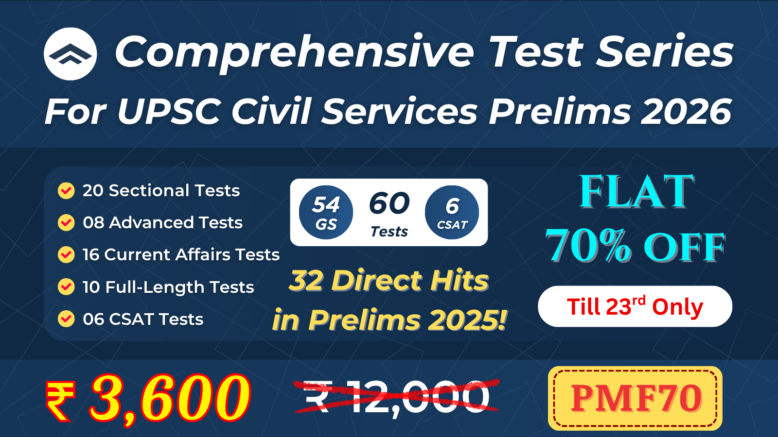 Conquer the UPSC CSE Prelims 2026 confidently with PMF IAS "Comprehensive Test Series" — the Most Holistic and Effective Test Series coming from the most Impactful Brand! Whether you are a beginner or a veteran, this Test Series has it all to help you secure a ticket to Mains!